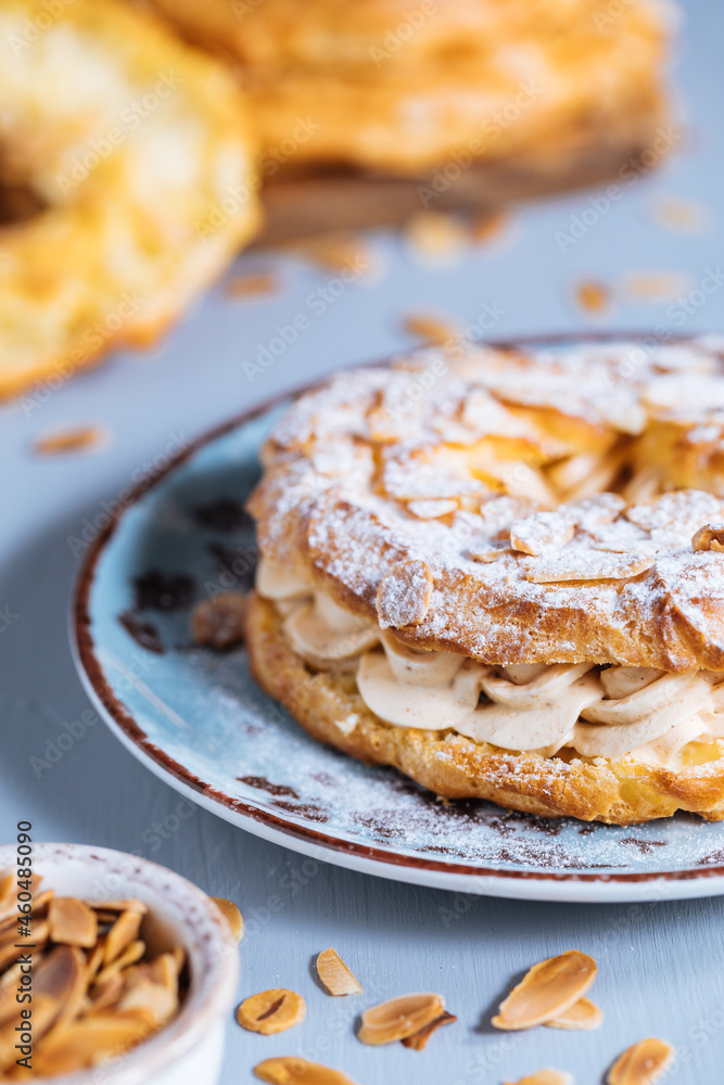 S’il existe une pâtisserie qui pourrait rivaliser dans mon cœur avec le mille-feuilles, c’est bien le Paris-Brest ! Surtout lorsqu’en plus de sa crème mousseline pralinée et de ses amandes effilées, il se trouve garni d’un praliné à l’ancienne aussi savoureux que croustillant.