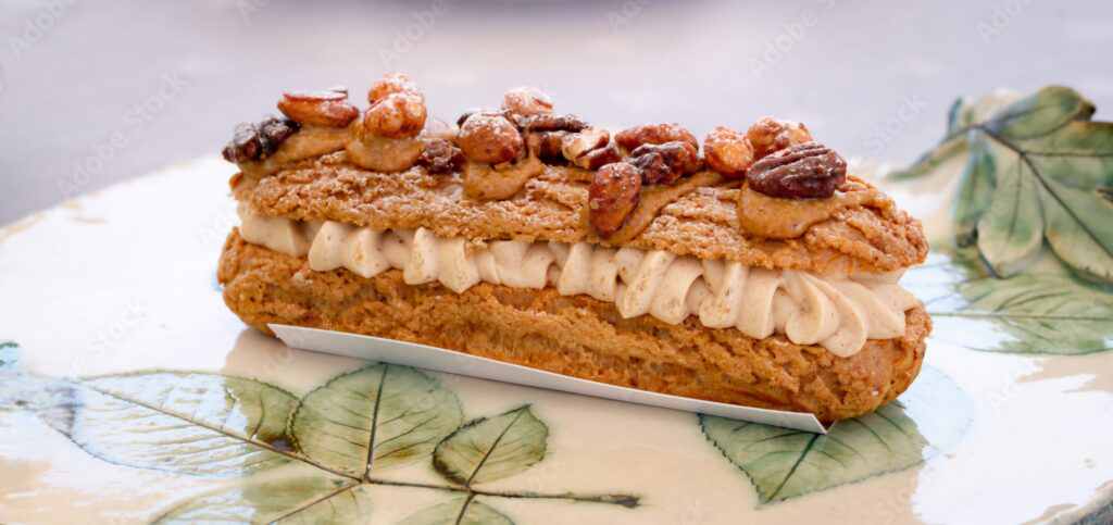 Dans tous les cas, aujourd’hui, il n’est pas rare de voir le Paris-Brest dans les vitrines des pâtisseries sous une forme allongée -comme un éclair- dite plus aisée à déguster et à transporter. (Je n’évoquerai pas le débat concernant le choix de la forme, chacun est libre de se faire son avis sur le sujet.)